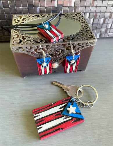 Also pictured: Mi Bandera Caoba/Mahogany Necklace and Earrings. Each item is available separately, as part of the Mi Bandera Caoba/Mahogany Necklace & Earrings Set, or as part of the Mi Bandera Caoba/Mahogany Matching Jewelry & Keychain Bundle.