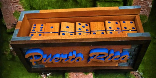 Set de dominos artesanales, confeccionados en madera de imbuia. Con tallado de la icónica flor de Puerto Rico, la flor de Maga y la Garita de el Morro. Cada una de nuestras piezas esta trabajada hasta el último detalle para brindarle al cliente una una pieza de calidad y exclusiva. Además, se realizan diseños de manera de pedido especial.