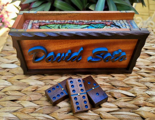 Made from ethically sourced Imbuia (Brazilian Walnut) trees from the island of Puerto Rico, hand-carved and handcrafted into a treasure domino set of superb quality. Each set is hand-carved to offer you a unique, one-of-a-kind, quality heirloom piece that will bring you and your family joy for years to come.