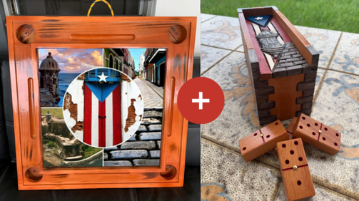 The Puerta Bandera Bundle includes the Taino Made Handcrafted Domino Table in the Puerta Bandera Morro San Juan style and our Puerta Bandera Caoba Wooden Domino Set.